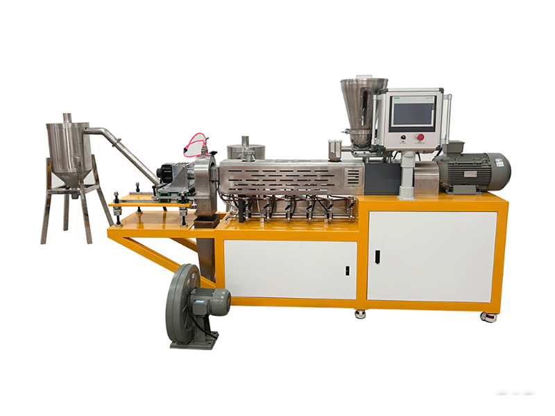 - 挤出系统:采用平行同向双螺杆,积木式螺杆与料筒设计,可按工艺调整组合;材质为耐磨特殊钢材,配备定量喂料与侧喂料,适配颗粒、粉末、液体等多种物料;可选熔体泵实现高压挤出,快开式机头与换网器便于清料与杂质过滤。